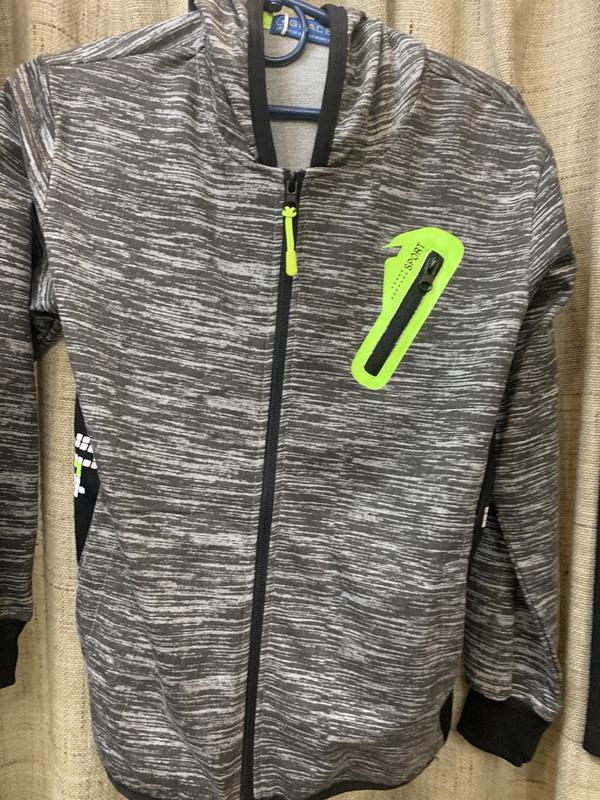 Батнік з капюшоном.Меланжевого кольору з салатовим кольором.