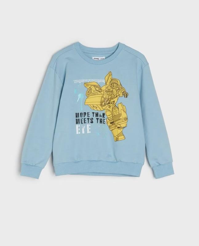 Голубой свитшот Transformers Размер 116-5/6 лет Новенький кругла горловина кайма резинкой в рубчик трикотаж с петельной тканью с внутренней стороны Состав головной ткани: 60% БАВОВНАЯ, 40% ПОЛИЕСТЕР