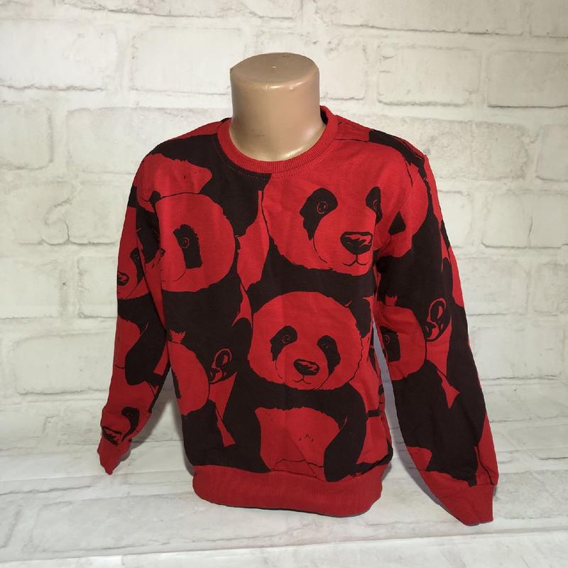 Свитшот Панда. Рисунок принт, спина однотонная. Турция. Размер: 📌8 лет: длинна рукава от плеча 45 см, ПОГ 38 см, длинна 50 см. Цвет красный.