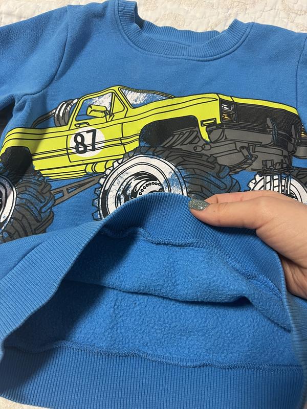 Свитшот c&a на мальчика на флисе. Очень качественный яркий и стильный. наклейка джипа прекрасно стирается и не сдирается, ребенку будет очень комфортно в свитшоте.