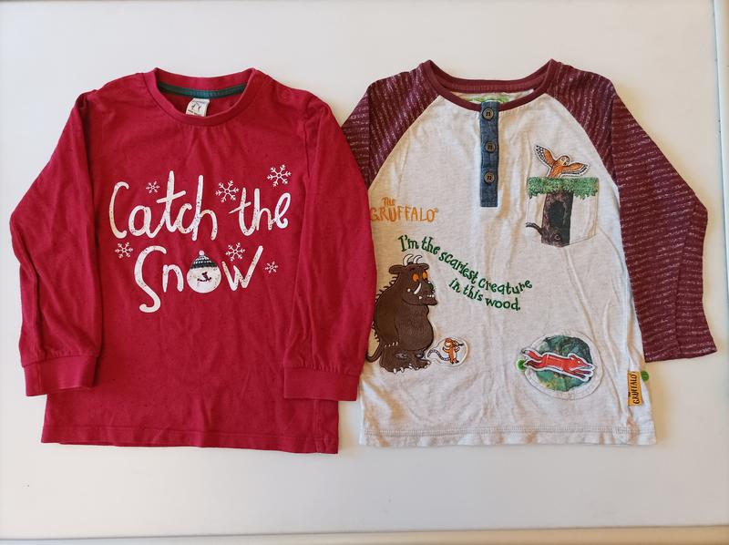 Хлопковые футболки Груффало и с новогодним принтом на мальчика 2-4 лет. Цена за набор, возможная продажа по отдельности.