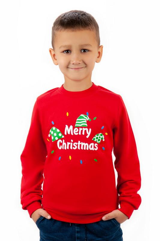 Базовый свитшот свободного кроя из однотонного футера с начесом высокого качества. Модель с длинными рукавами на манжетах, воротником-стойкой из эластичного материала, с манжетом по низу изделия. По переду изделия нанесен рисунок методом шелкотрафаретной печати с новогодним принтом. Можно создать образ family look. Полотно: футер с начесом пенье Состав: 100% хлопок ,,2462