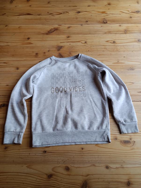 Світшот сірого кольору на зріст 146 см,склад тканини:68% polyester,32% cotton.Заміри:пог-42 см,довжина рукава-56 від коміра,42 см від пахви,довжина 52 см