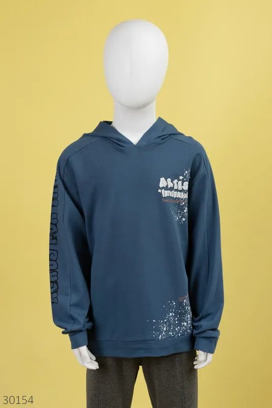 Свитшот для мальчиков 8061-4-1 синий худи артист
