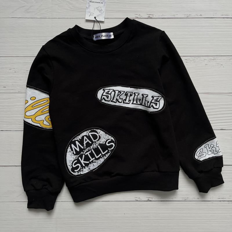 Стильний світшот з надписами пошитий в одному екземплярі , більше такого ні в кого не буде. В наявності на зріст 122 см 7 років Довжина 46, рукав 44, ширина 41 Тканина двунитка, ПРЕМІУМ ЯКОСТІ, вона має натуральний склад: 95% котон, 5% еластан. -Тканина не кошлатиться -Після багаторазового прання зберігається колір. -Якісний пошив Дивіться інші мої оголошення