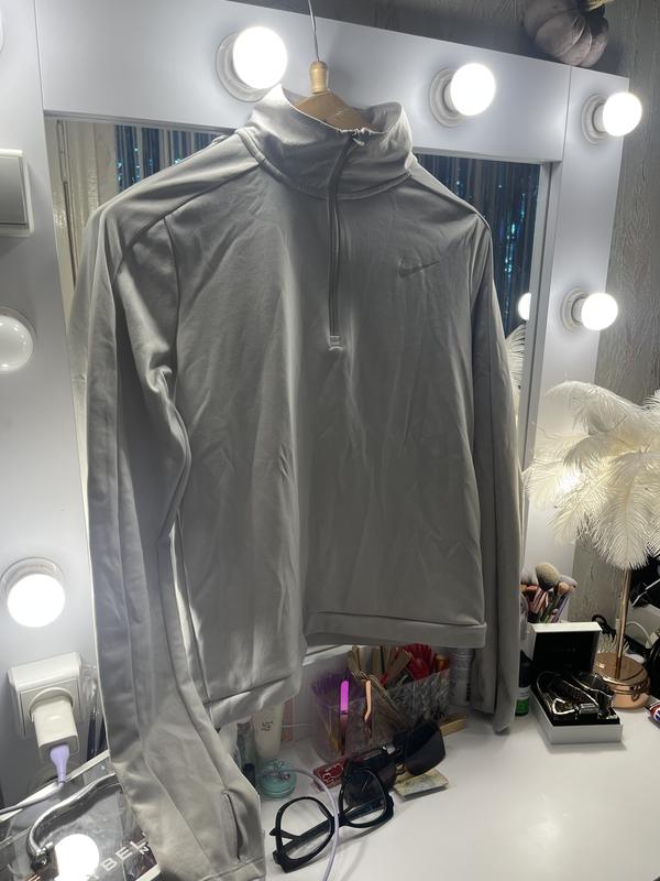 Имеет отверстия для пальчиков, размер М, цвет серо-фиолетовый, имеет две затяжки и чуточку разошелся шов на рукаве