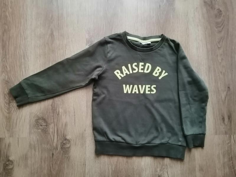 Свитшот цвета хаки от Name it. Очень хорошее состояние, без катышков, надпись не потрескана. Размер 116, полномерный. Имею также другую одежду для мальчиков этого возраста.