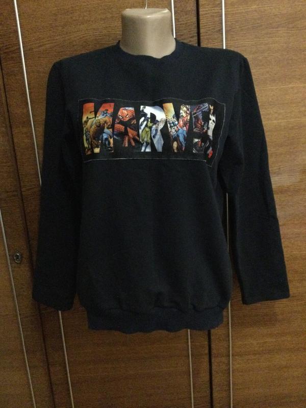 Стрейчева. З героями коміксів. ПОГ -48 см. Рукав- 56 см. Плече- 12 см. Довжина від плеча - 62 см. Размер S.