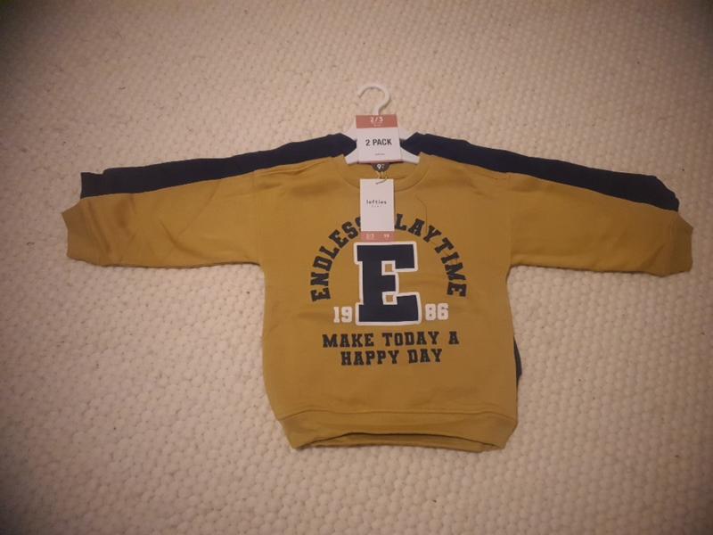 Трикотажный комплект свитшотов для мальчика 2-3роков 92-98 размер. Горчичный и темно-синий цвета. Утепленный байечкой