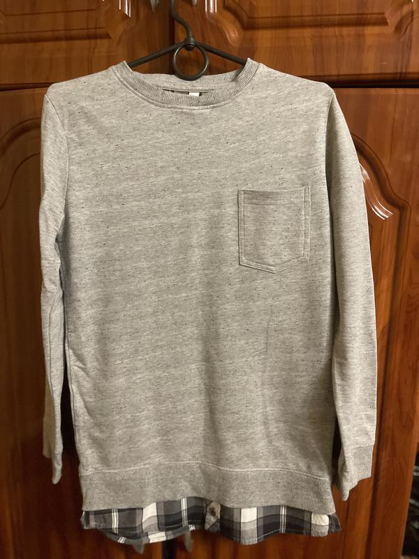 Продам свитшот детский (подростковый) на 10-12 лет, на высокого и худи мальчика. Низ как бы из рубашки - это обманка. Изготовлен из натуральных тканей, без утепления, очень стильный и нарядный.