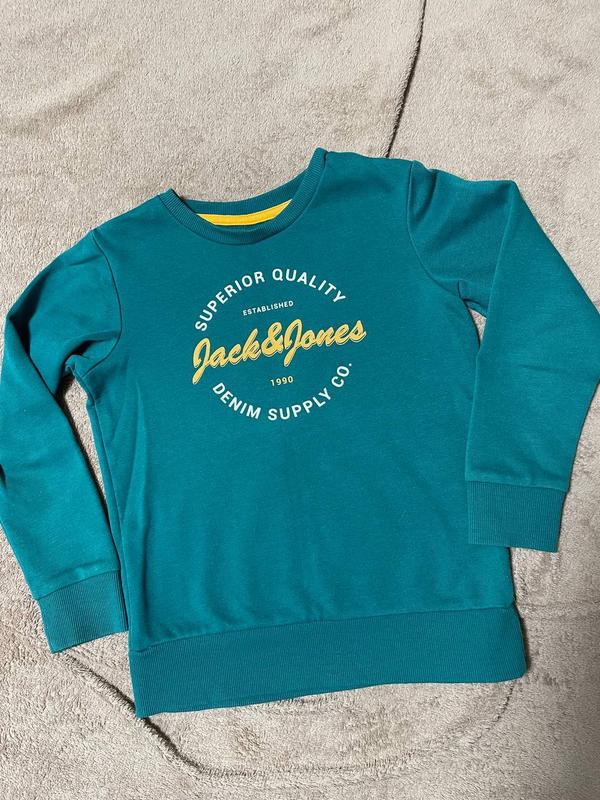 Світшот jack&jones Зріст 128 см, стан дуже хороший. На манжетах немає катишків, колір гарний зелений. Заміри Довжина по спинці 44 см, плечі 32, ширина під пахвами 39 см, ширина резинки знизу 35 см, рукав 44 см, по внутрішньому шву 36 см