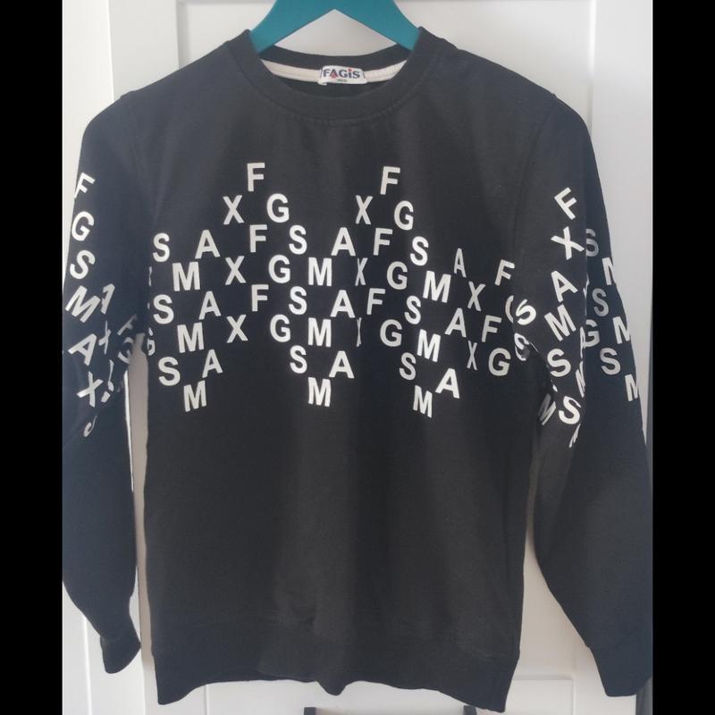 Классный качественный свитшот. Глубоко черный цвет. З манжетами. Не утеплен, но и не тонкий. Замеры: длина 60, ширина 46, рукав от шеи 68