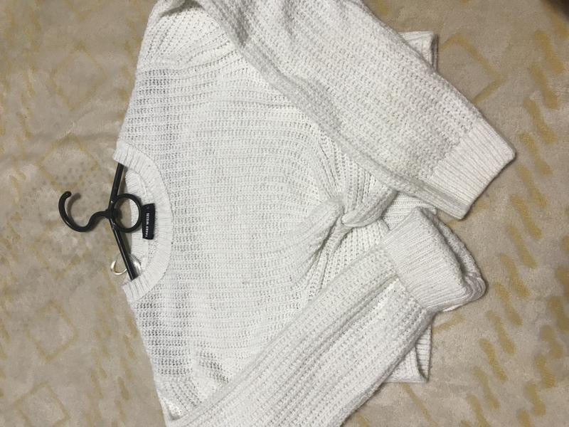 Білий теплій светр дитячий/підлітковий Довжина від плечей:36 см Довжинв рукав від шеї:73