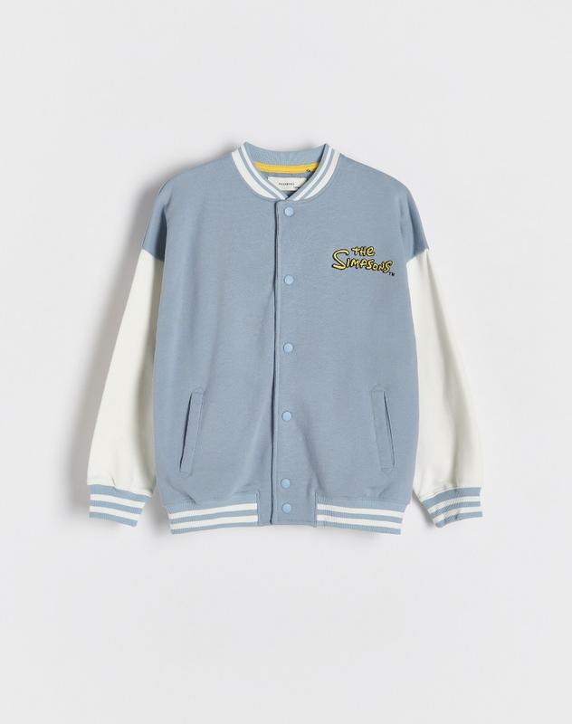 Новий світшот класичного крою, виготовлений із трикотажу з високим вмістом бавовни: низький комір стійка, занижена лінія плечей, довгі рукави, застібка на кнопки, дві кишені спереду. Розмір 158/164, заміри є на фото. В наявності 2 шт