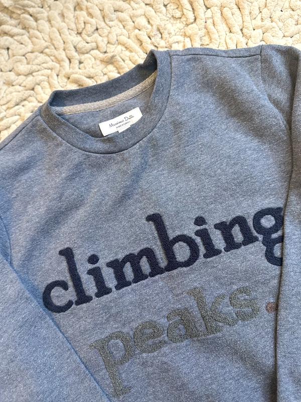 Пропоную стильний світшот Massimo Dutti для хлопчика/11–12 років (розмір 146–158). Колір — сірий із темно-синім, спереду напис “Climbing Peaks”, що додає спортивного настрою. М’яка бавовняна тканина, приємна до тіла, добре тримає форму 📏 заміри: довжина – близько 58 см ширина під пахвами – 48–49 см довжина рукава – 60 см плечі – 40 см