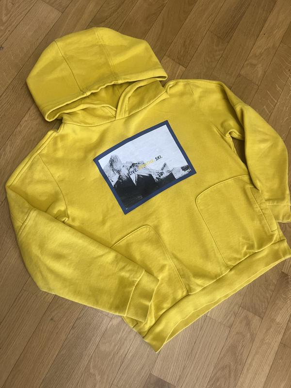 Красива стильна кофта з капюшоном Nukutavake Mayoral Склад бавовна 98 % Колір жовтий Розмір на 10 років , але дивіться на заміри . Дивіться інші мої оголошення- є ще багато речей такого розміру