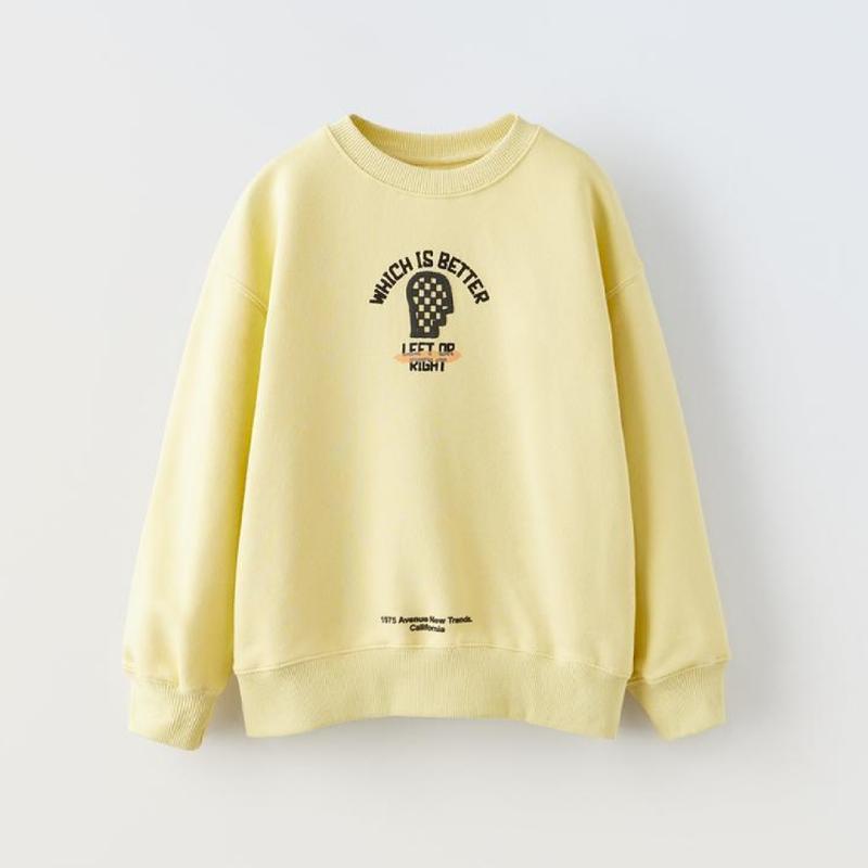 Свитшот лимонного цвета трехнитка с принтом на спине от Zara модель оверсайз в наличии размер 📌 164 13-14 ширина между рукавами 53 длина по спине 61 длина рукава от горловины 71