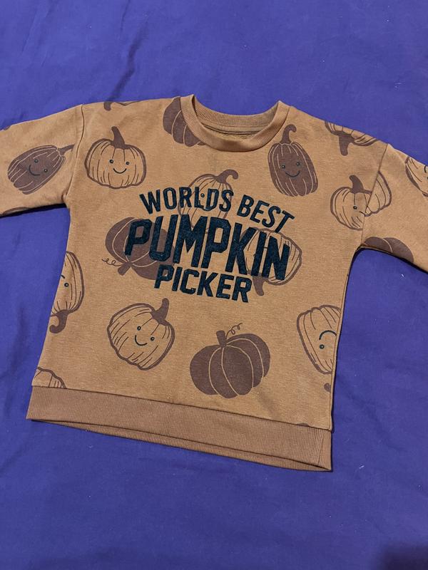 Милий світшот в гарбузики. Колір як на останньому фото, камера не передала. Розмір 2-3 роки. На флісі. Колір насичений