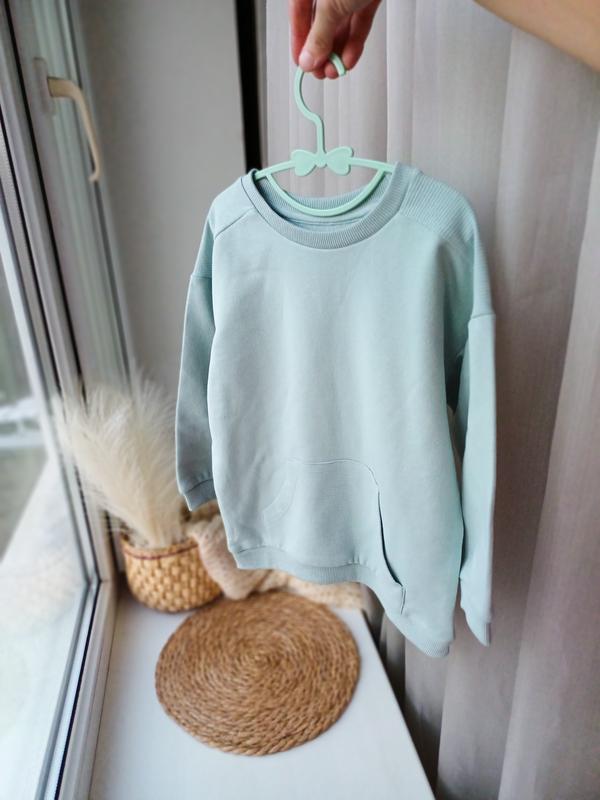 свитшот🤍 🏷3-4 р, рост 104 см состояние новое 📐длина 44 см, пог 38 см, рукав от шеи 41 см.