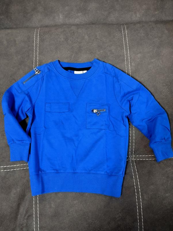 Свитшот на мальчика от Name It. Размер 5р(110см). Замеры: ширина плеч 27см, длина рукава 37.5см, ПОГ 37см, длина 42см. Очень хорошее качество, приятное к телу. Цвет очень красивый, но не такой кислотный как на фото получился. Новый, но не имеет бумажной этикетки.