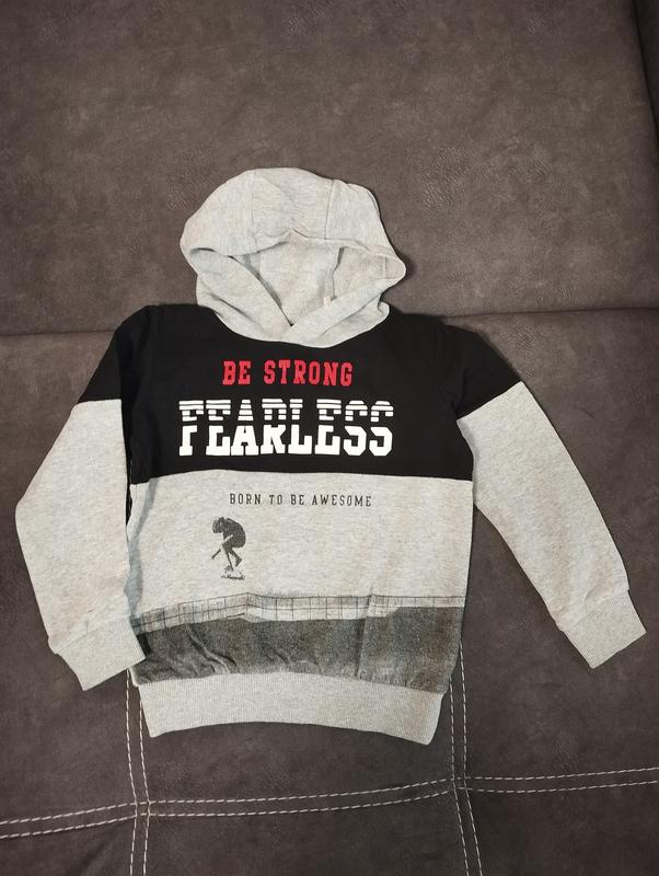 Стильный свитшот на мальчика от турецкого бренда Koton. Свитшот утепленный с объемным накатом-надписью. Размер 6-7р (116-122см). Замеры: ширина плеч 33см, длина рукава 44см, ПОГ 40см, длина 48см. Стан добрый.