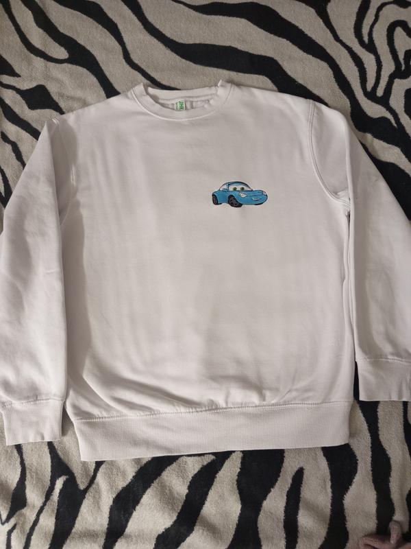 Світшот білий з нашивками ,утеплений ,в ідеальному стані .Довжина 65 см ,довжина рукава від плеча 56 см , ПОГ 55 см .