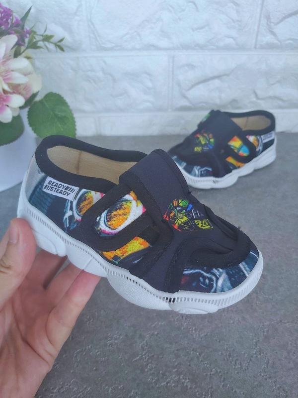 К.1013 🧒Зручні тапочки Ready Steady, верх текстиль, устілка шкіряна з супінатором, міцна ліпучка, підійдуть на високий підйом і широку ніжку. 23р устілка 15см
