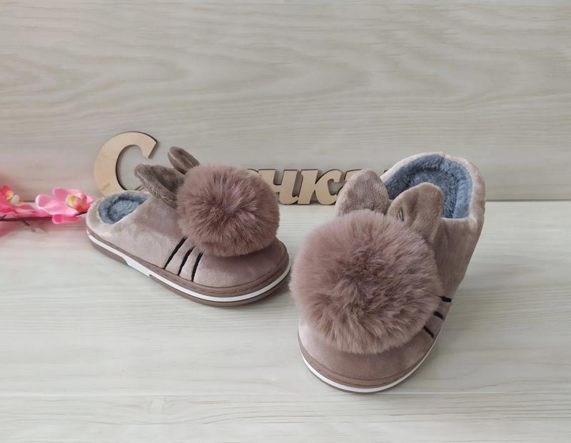 270грн Дуже гарні тапочки для діток тепленькі всередині махра зверху помпон і вушка р21-устілка -19см(2шт) р22-устілка -20см(1шт) допустимо+-2мм код 681