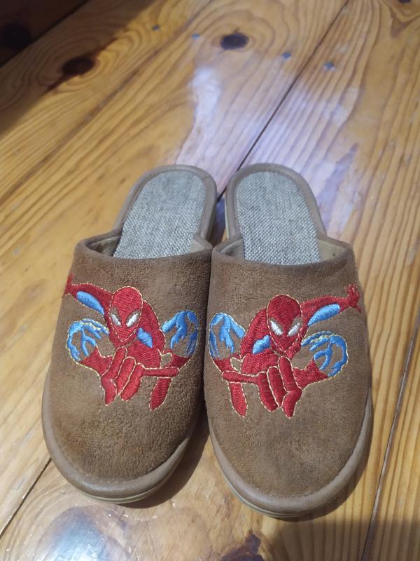 тапочки р33, б/в состояние идеальный,цвет свет коричневый с нашивкой мужчина паук