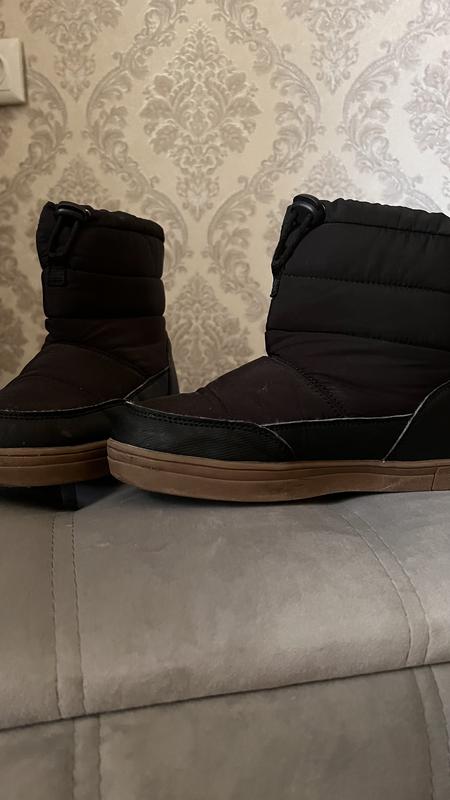 Зимние дутые ботинки черного цвета, внутри утеплены каракулем! Стягиваются на ножке резинкой! Удобные и стильные! Взывали всего 2 раза! Не подходит размер!