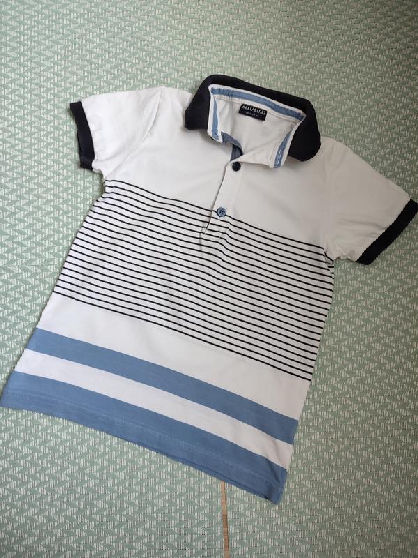 тенниска для мальчика по выборке 4-5 лет в целом состояние идеальное кроме воротника, на нем есть светлая полоска там, где сгибается замеры: длина от плеча до низа 45 см ширина 33 см