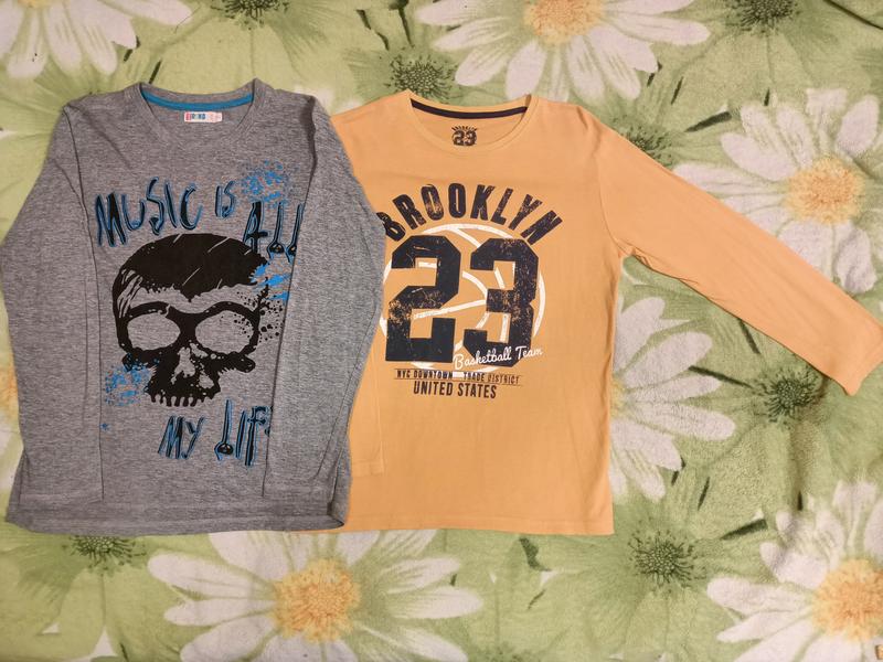 Продам 2 лонгслива на парня в очень хорошем состоянии. Фото 2-5 Лонгслив Rebel горчичного цвета. Размер примерно на 152, но лучше ориентируйтесь на замеры: Длина от плеча - 62см, Ширина под рукавами - 45см, Длина рукава от плеча - 49см, Плечи - 43см. Фото 6-8 Лонгслив серого цвета Длина от плеча - 59см, Ширина под рукавами - 46см, Длина рукава от плеча - 54см, Плечи - 41см. При необходимости могу отправить по Новой почте, Укр-почте, Meest за счет покупателя. Цена за 1 шт.