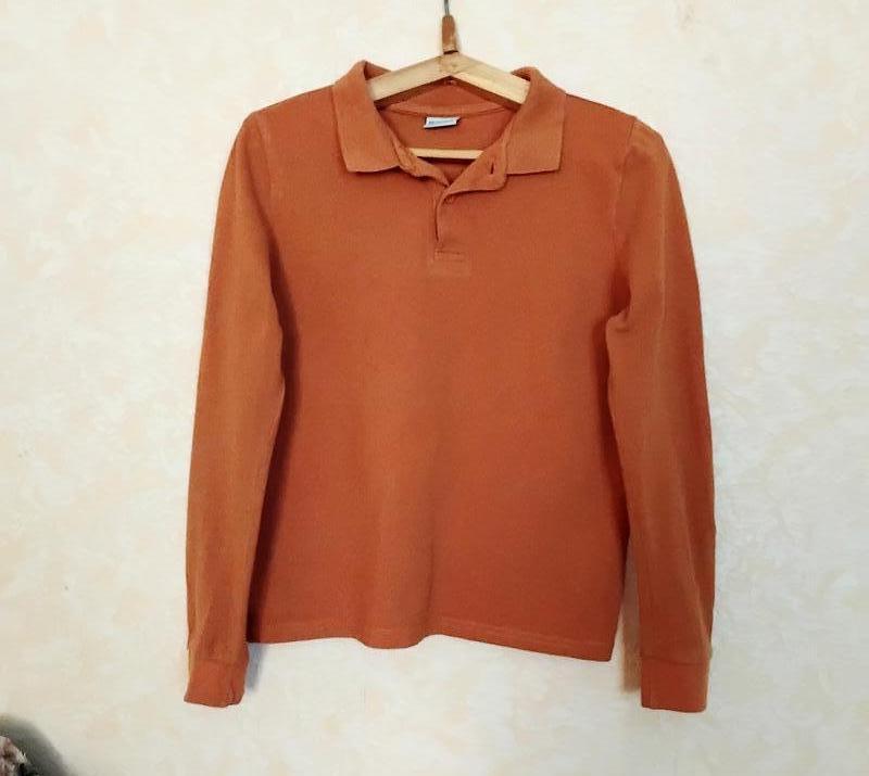 Тениска, приятного коричневого-оранжевого цвета( фото, цвет не передало). Замеры: рук.- 55.По спинке-49. ПОГ-42. В отличном состоянии