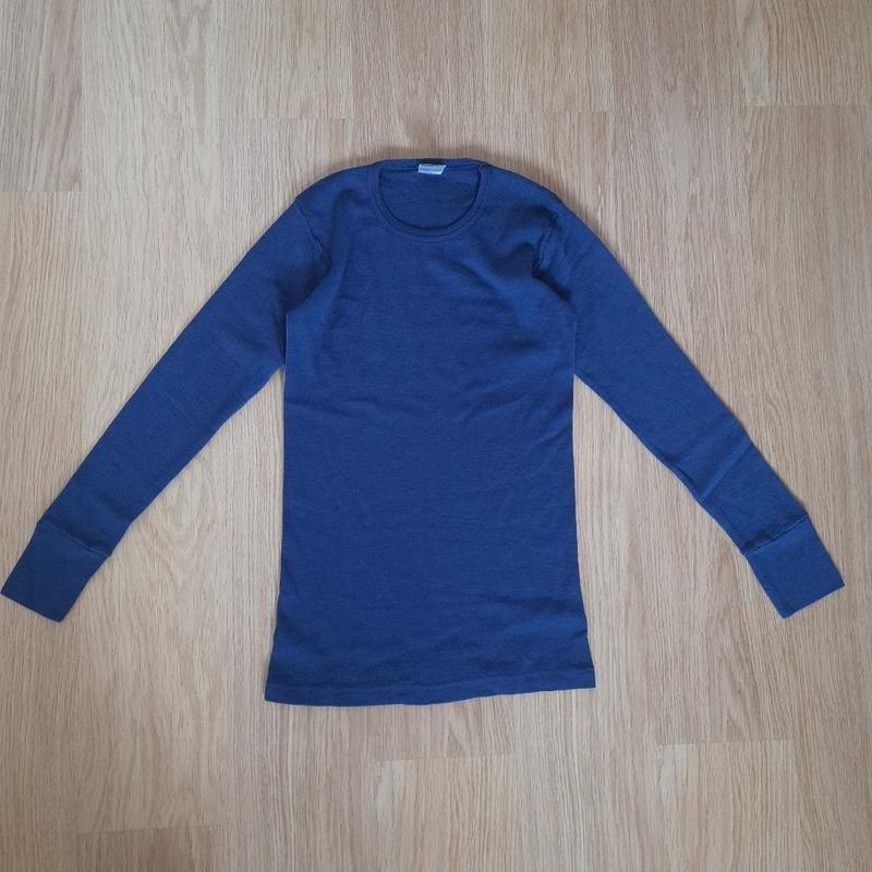 Нательная кофта из шерсти с добавлением полиамида (90/10), производство Швейцария, очень теплая Состояние очень хорошее Бирка с размером срезана, ориентироваться лучше на замеры: Плечи 32 рукав 53 ПОГ 36 Длина по спинке 60