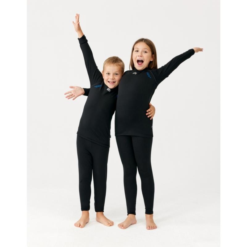 Предназначено для занятий спортом на улице в холодное время года. Это отличный выбор для спортсменов: велосипедистов, бегунов, лыжников и т.д. Но и в повседневной жизни этот комплект будет эффективным при высокой физической активности. Выполнено из синтетического волокна с начесом внутри по технологии Clariant Moisture Management, благодаря которой материал быстро и эффективно выводит влагу наружу, и кожа всегда остается сухой и в тепле. Обработка ионами серебра препятствует размножению бактерий и образованию грибка, таким образом неприятный запах не появляется долгое время. Все швы выполнены по технологии Autolap (технологии плоских швов), поэтому даже при очень активных движениях не возникает неприятных ощущений. Для безопасности ребенка в темное время суток, на кофту и брюки нанесены светоотражающие элементы. Цвет: черный с синим. Состав: 92% полиэстер, 8% эластан. Назначение: высокая физическая активность. Температурный режим: -15... + 15.