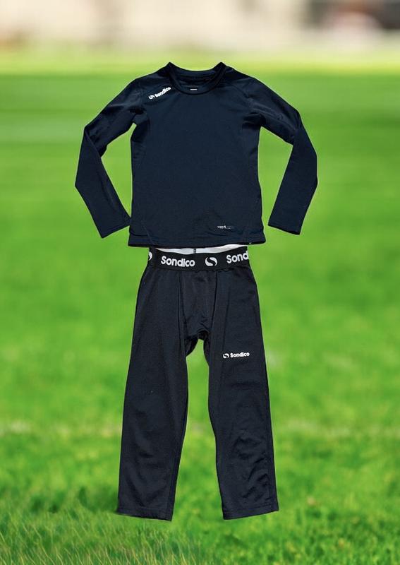 Термобілизна Sondico. На зріст 122-128см. 7-8 років. В хорошому стані. Штани чорні, кофта темно синя. Для футболу та інших спортивних занять. Призначення: Забезпечує повітропроникність, відводить вологу і допомагає зберегти тіло сухим і комфортним під час інтенсивних тренувань. Матеріал: Зазвичай виготовляється із суміші поліестеру та еластану (лайкри). Деталі: Має плоскі шви для запобігання подразнення шкіри та еластичний пояс на легінсах.