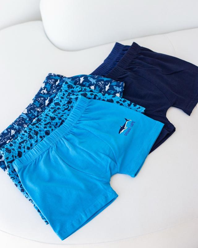 ВЫМЕРЫ (длина резинки / высота трусов / боковой шов): 8-9 (27/18/22); 10-11 (28/18/24); 12-13 (29/19/24); В упаковке 5 трусиков одного размера всех расцветок. Материал: 95% хлопок, 5% эластан.