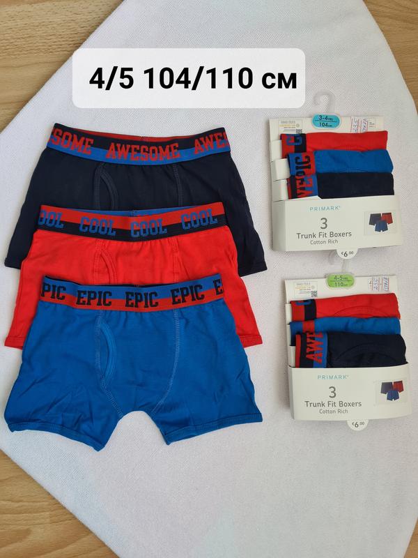 Трусики боксеры фирмы Primark. Куплено в Испании фирменный магазин Качественные и очень красивые Набор состоит из 3 шт Тканина 3×95% cotton 5% elastane Наличие размеров 4-5р 104/110 см Дополнительно фото и замеры в пп Отправка новая или укрошта Предоплата за доставку в две стороны или полная оплата Нательная бельё не подлежит обмену и возврату ********** viber.