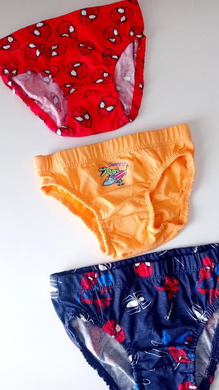 Новые трусики для мальчиков в возрасте 1,5-2 лет (красные, оранжевые), и в возрасте 2-3 года (синие с паучками). Полуобхват бедер 22 см, высота 18 см. Цена за однуальцу.