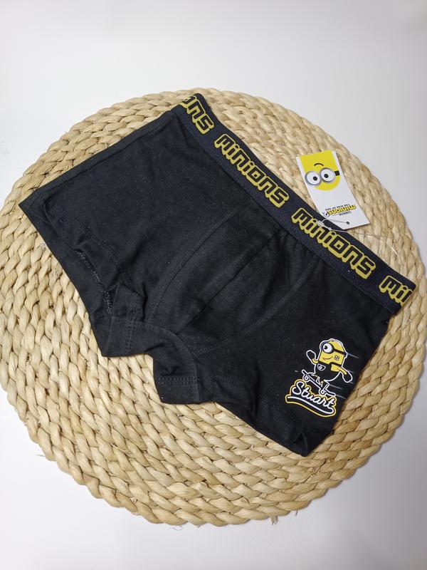 Трусики боксери для хлопчика Minions 1пара Распаровка из набора Полномерные. Отличное качество! Рекомендую! В наличии: р.122/128 – на 6-8 лет – 1 шт. Замеры: Ширина по резинке - 27см Глубина посадки - 19см Склад на фото. Приятная ткань. Широка гумка Новые, с бумажной биркой