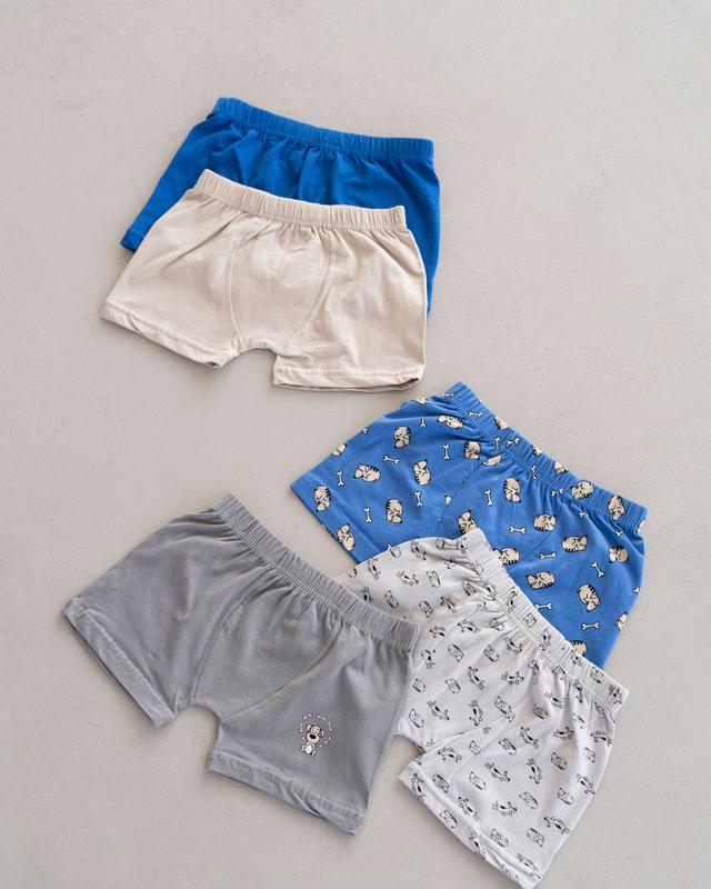 Набір трусиків шортиків для хлопчика. В наборі 5 штук різних кольорів. Розміри: 8-9, 10-11, 12-13 ЗАМІРИ (довжина гумки / висота трусів / бічний шов): 8-9(24/17/22); 10-11(26/18/25); 12-13 (28/19/26 Склад: 95% бавовна, 5% еластан