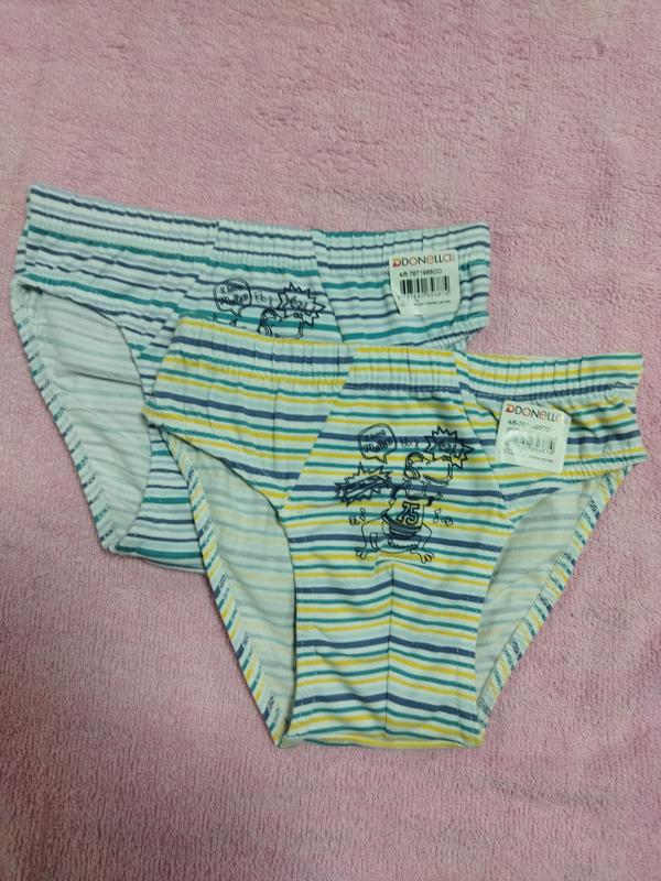 Трусики донелла известны своим качеством и доступной ценой. Шеются они в Турции на высококачественном оборудовании, поэтому все швы и обверложка ровные, без висячих нитей. Склад тканини - 95% бавовна, 5% еластан. Хорошо тянутся, приятны на ощупь, не создают парникового эффекта. После многочисленных стирок не меняют цвет и форму. Модель слипы. Ластовица двойная, Цвета трусиков: в полоску. код 2331. Размер: напарница 4/5 лет. Заходите в мой магазинчик, там есть много интересных качественных товаров: нижнее белье, носки, колготки, кофточки, штанишки, шапочки, тапочки, текстильные изделия для дома, термобелье и многое другое. Строй рада вас видеть у себя в гостях. Подписывайтесь на мои обновления. Высылаю новой почтой и укрочтой, оплата на карту Приватбанка и безопасная оплата на Шаффе. Пишите - всем ответьте.