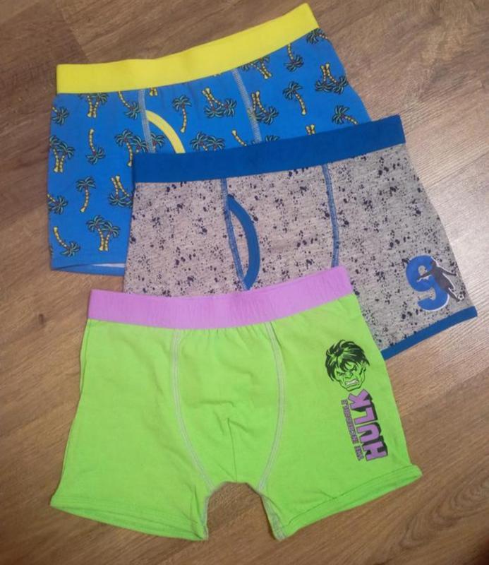 Хлопкові трусики боксери на хлопчика від брендового виробника Primark,з еластичними резинками не втрачає колір при стірці не розтягуються.В наявності розмір 128/134 на 8-9років. довжина -22см. талія по резинці -29см. посадка спереду 19см.