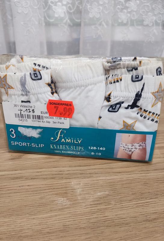 Упаковка із трьох спортивних трусів-сліпів Family для хлопчиків зі 100% бавовни, розмір 128-140 (8-10 років).