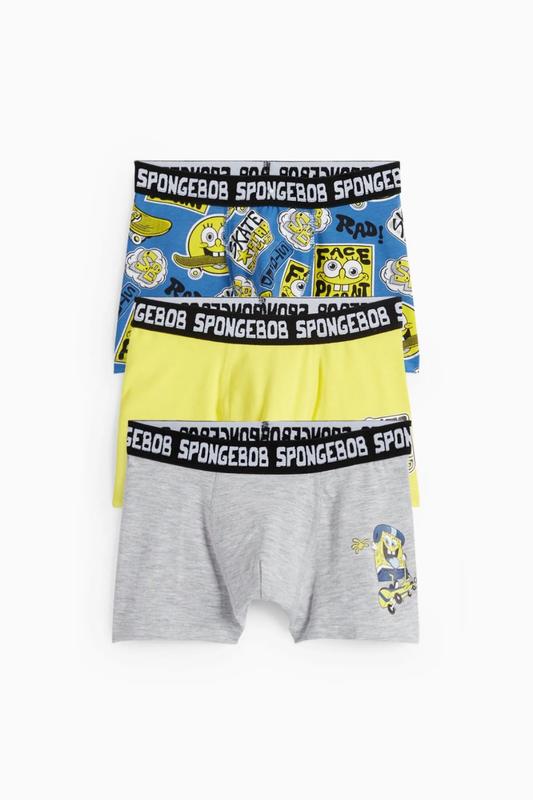 Набор боксеров немецкого бренда С&А. Боксеры из трикотажа с рисунком Губка Боб. Имеют эластичный пояс. Продаются набором из трех шт. Размер указан 110-116/5-6 лет.