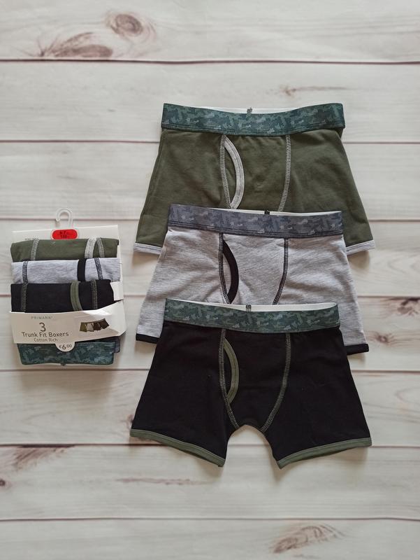 Комплект боксеров Primark на мальчика 4-5 лет. Размер 110 : ширина 24,5см, высота 20 см. Состав ткани : 95% котон, 5% эластан. Страна-производитель: Бангладеш