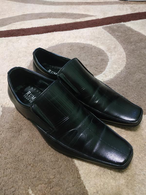 Туфлі для підлітка з еко-шкіри, 36 розмір. Взуття доглянуте, в хорошому стані. Незначний дефект, на лівому носку (показано на фото), який прьховається звичайним чорним кремом для взуття.