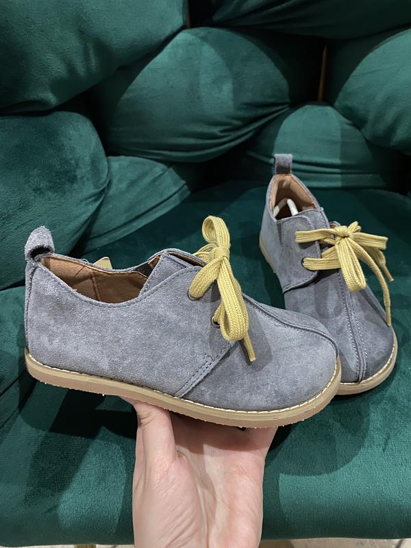 Новые. Приглянущий цвет чуточку темнее. Из искусственного замша, но выглядит как натуральный. Размер 28, длина стельки-18,5 см