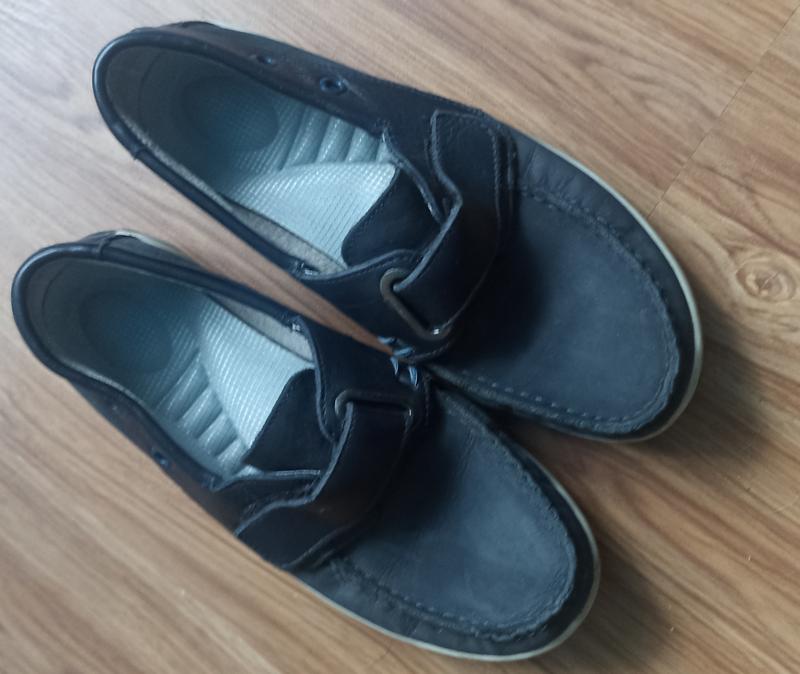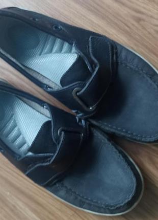 качественные кожаные туфли для мальчика темно-синего цвета на липучке. Длина стельки 23, на ступне 22 см.
