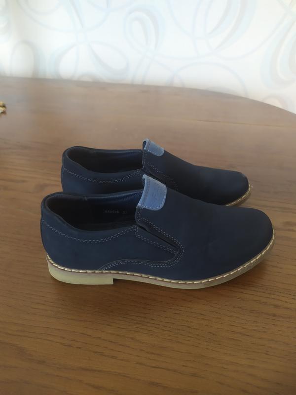 туфли для мальчиказировали 2 раза на праздник в садик на выпускной, в очень красивом состоянии, верх экозамш, р 33 стелька 21,5 см. один носок имеет небольшой дефект,чуть потертость фото все добавила. цвет темно темно синий к черному